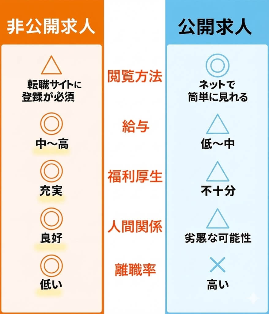 転職サイトの中の「非公開求人」と、ネットで見れる誰でも応募可能な「公開求人」には、実は大きな差があります。